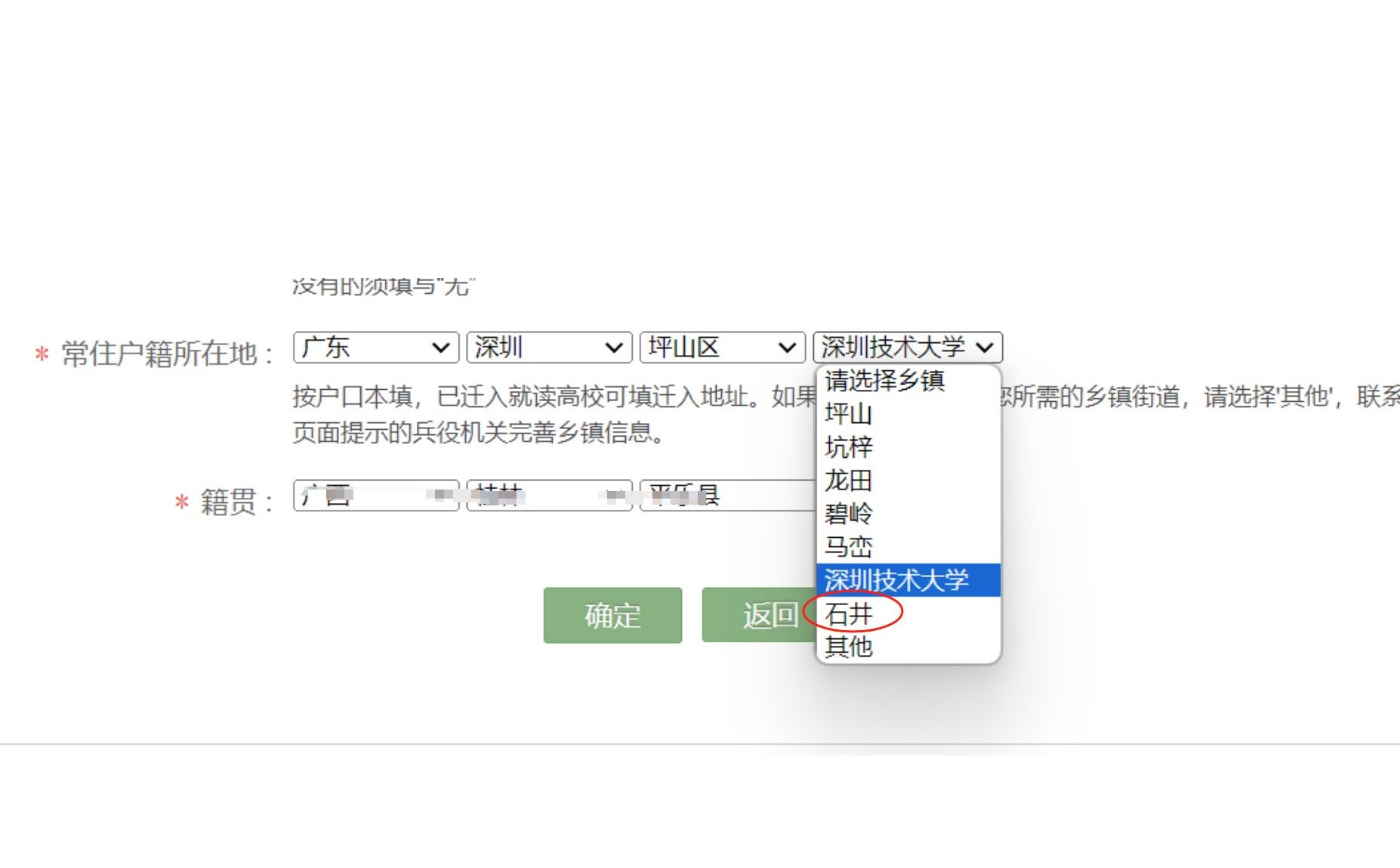 6、报名应征地选择,请统一选择:广东深圳坪山区石井