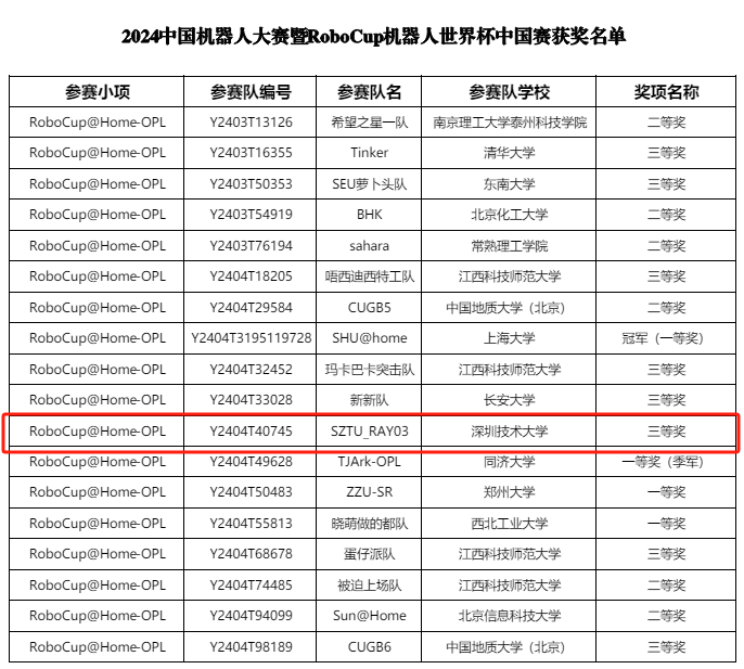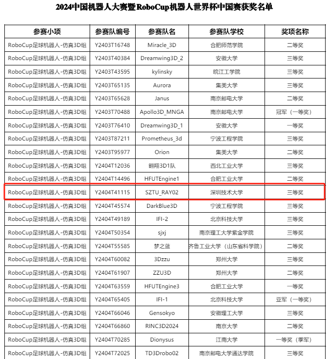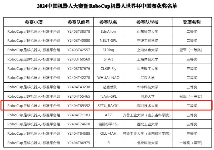 近日,2024中国机器人大赛暨RoboCup机器人世界杯中国赛在福建落幕。kaiyun开云官方网站首次派出学生参赛,由中德智能制造学院彭曙蓉、刘华辉、罗秋月、刘小旭老师指导。比赛中,同学们发扬勇于挑战、敢于创新、团结协作的精神,在足球机器人-标准平台组比赛中获全国二等奖,在足球机器人-仿真3D组、@Home服务机器人组、四足机器人组比赛中获全国三等奖。