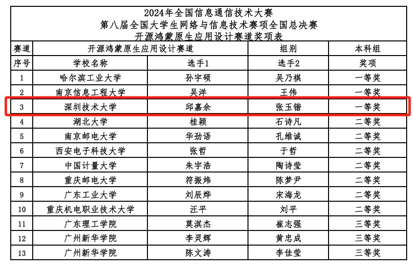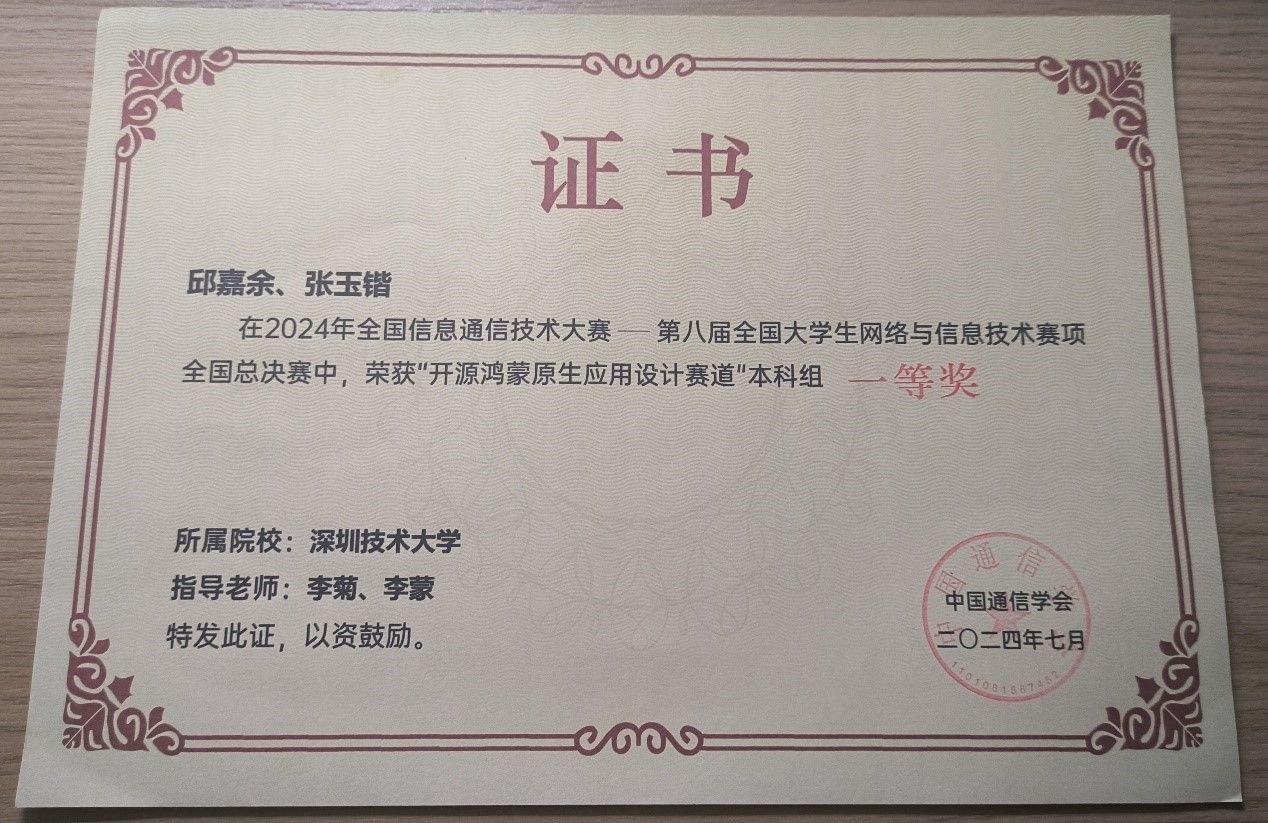 近日,2024年全国信息通信技术大赛——第八届全国大学生网络与信息技术赛项在成都落幕。kaiyun开云官方网站首次派出学生参赛,在“开源鸿蒙原生应用设计赛道”中获全国一等奖。
