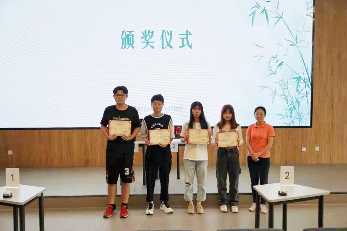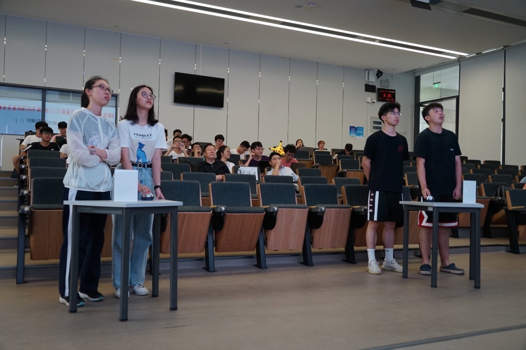 在抢答中,参赛队员们充分展示了他们深厚的知识基础,现场气氛热烈,场上比分呈现你追我赶的焦灼姿态。经过1/8决赛、1/4决赛、半决赛和决赛的角逐,敬浩先、邱梓标两名同学所组成的队伍获得了本次竞赛的冠军。