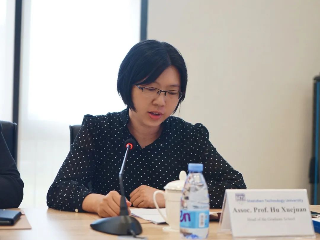 研究生院负责人胡学娟介绍了我校研究生规模及招生学科,她表示,希望未来两校能够在科技创新和学术研究方面探索合作新模式,为学生提供更广阔的平台,共同培养具有国际视野的高水平科研人才。