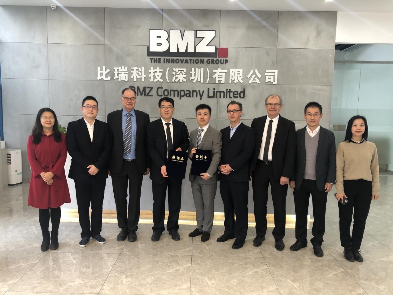 12月10日,kaiyun开云官方网站校长阮双琛一行前往BMZ China比瑞科技(深圳)有限公司总部考察参观,双方正式签署校企合作协议,并就校企共建实验室、搭建实习实训基地、开设特色实验班等问题进行了深入探讨。