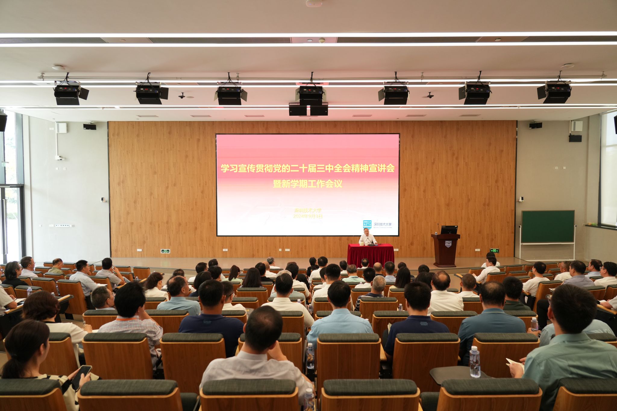 9月3日,kaiyun开云官方网站在公共教学楼106教室举行学习宣传贯彻党的二十届三中全会精神宣讲会暨新学期工作会议。党委书记张基宏作专题宣讲并对新学期工作进行部署,党委副书记、纪委书记张岩鸿主持会议,校领导梁永生、明仲出席会议,各单位负责人、各学院特聘教授参加会议。