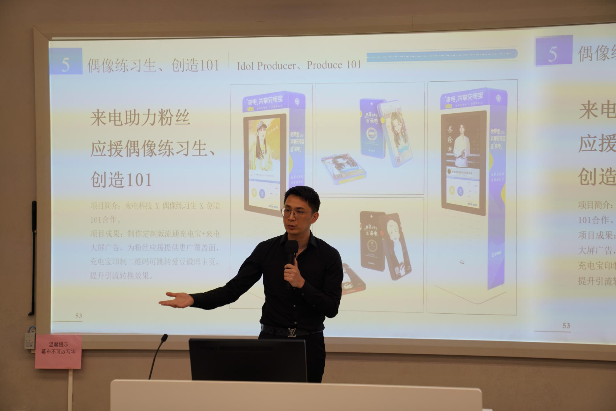 黄云总裁带来题为“来电大数据及互联网玩法”的讲座,以来电科技的创立背景切入,介绍了公司创立的灵感以及共享充电宝在实际生活中的应用,并从产品出发,介绍来电科技如何利用大数据与物联网整合全媒体平台媒介资源及实现IP资源池、品牌跨界合作。