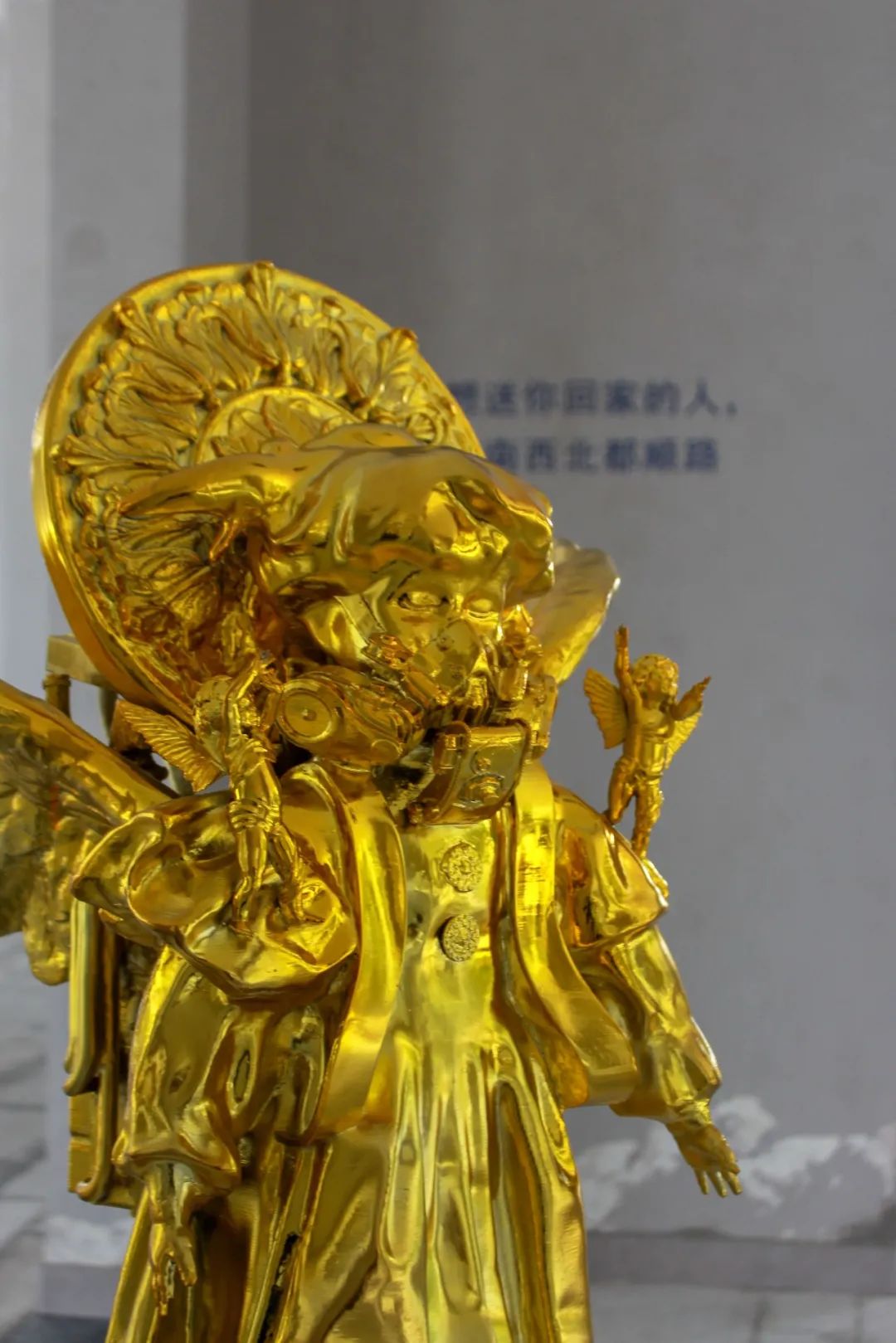 作品简介:作品的原型来自于作者儿时在欧洲买的洋娃娃,“口罩”形象自带历史和记忆属性,为观众描述了2020这一特殊年份的生活画面。肩膀上的小天使象征美好、自由和希望。作品融合西方当代艺术和中国传统工笔画的表现手法,力求在风格上创造出崭新的艺术形式和艺术形态,为观众展现作者心中的一方圣地、一方宁静、一方真诚坦荡。
