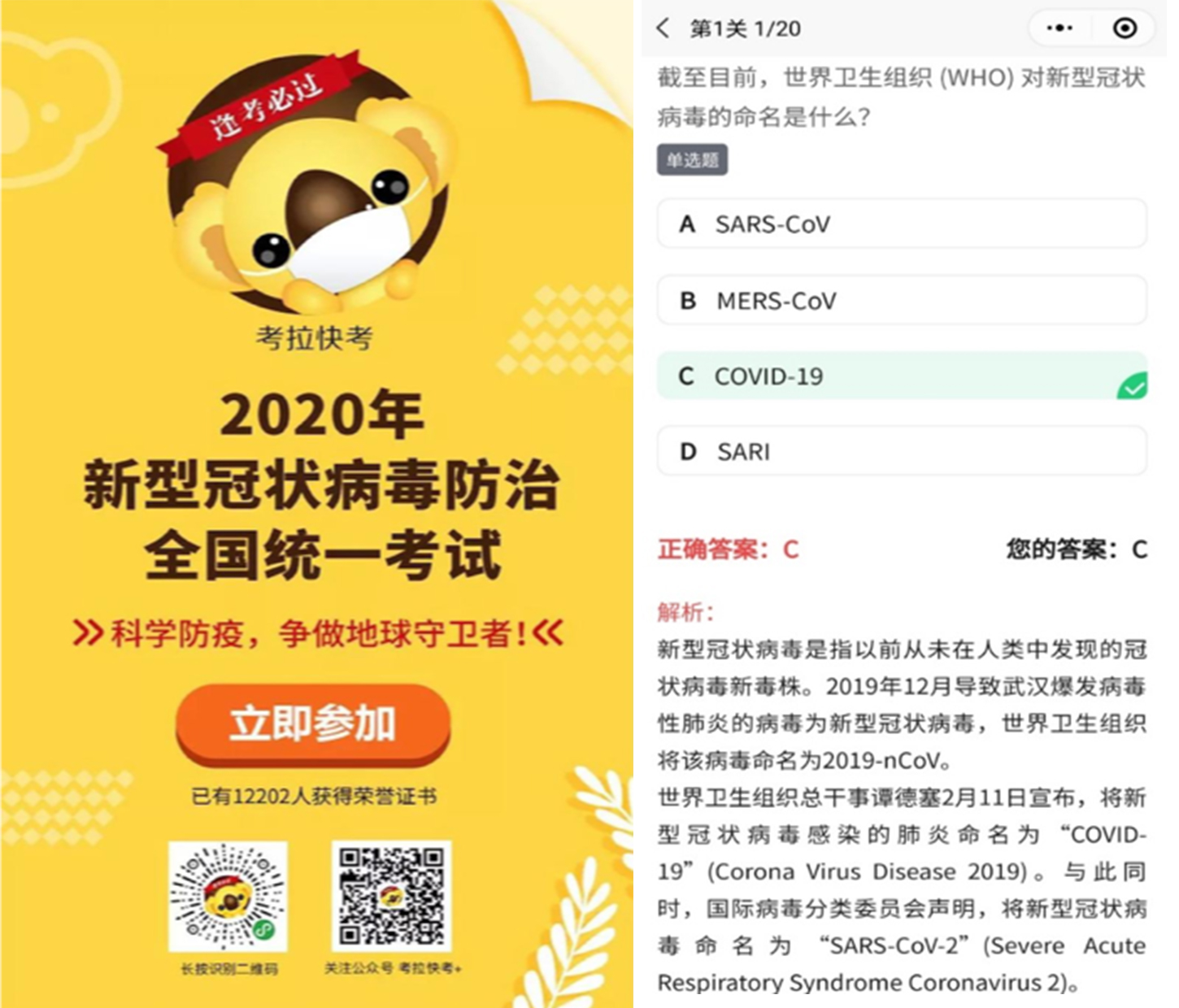 图书馆党支部充分利用网络平台,倡议全体党员积极参加线上2020年新型冠状病毒防治知识竞赛,完成5关关卡答题,争当“地球守护者”。同时,叶建华、李红艳、刘宁宁3位党员通过视频会议形式分享了在疫情期间参加志愿活动的工作经历,为全体党员树立了榜样。