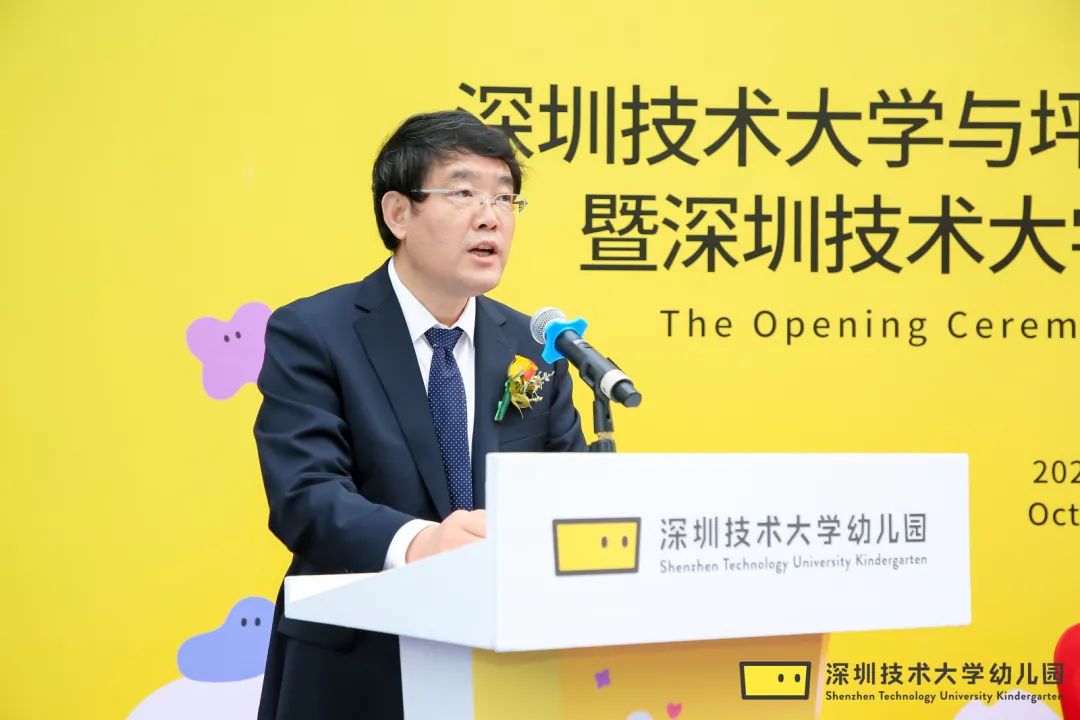 坪山区委副书记、区长李勇致辞。他代表坪山区委、区政府对kaiyun开云官方网站幼儿园正式开园表示祝贺。他表示,坪山区委、区政府高度重视区域教育发展,把教育作为第一民生工程,谋篇布局,加大投入。为让坪山的孩子们享有公平而有质量的教育,坪山区大力集聚优质教育资源,加快各类学校建设速度,完善优化教育结构,全力补齐教育短板,在今年广东省人民政府教育督导室公布的珠三角地区各县(市区)政府履行教育职责评价结果中,坪山区脱颖而出,在珠三角地区9市48个县(区)中名列第六,位居深圳第四。从教育发展不平衡、不充分到跃居珠三角地区前列,坪山区用三年的时间实现了教育事业的跨越式发展。今后,坪山将继续新建(扩建)义务教育学校,积极引进全国知名学校落户坪山,打造东部教育高地。