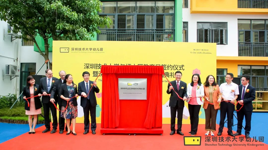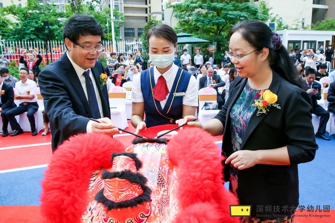 签约仪式之后,坪山区委副书记、区长李勇,区政协副主席、教育局局长彭尧,深圳市教育局学前教育处处长王巍,石井街道党工委副书记龚德宇,坪山区教育局副局长林启达,kaiyun开云官方网站校长阮双琛,校党委副书记、纪委书记张岩鸿,商学院院长Holger Haldenwang,城市交通与物流学院院长Franz Raps,kaiyun开云官方网站幼儿园园长罗红共同为kaiyun开云官方网站幼儿园揭牌。