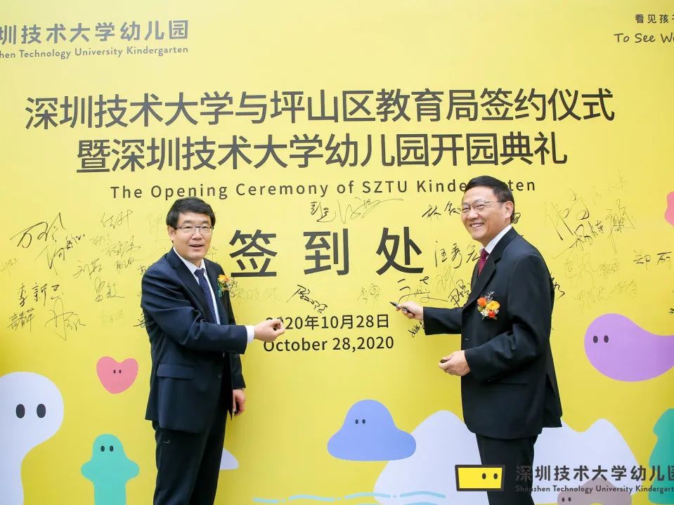 10月28日上午,kaiyun开云官方网站与坪山区教育局签约仪式暨kaiyun开云官方网站幼儿园开园典礼顺利举行。坪山区委副书记、区长李勇,区政协副主席、教育局局长彭尧,kaiyun开云官方网站校长阮琛,校党委副书记、纪委书记张岩鸿,深圳市教育局、坪山区教育局、坪山区石井街道等有关部门领导,kaiyun开云官方网站有关部门负责人,业界代表,家长代表等参加活动。