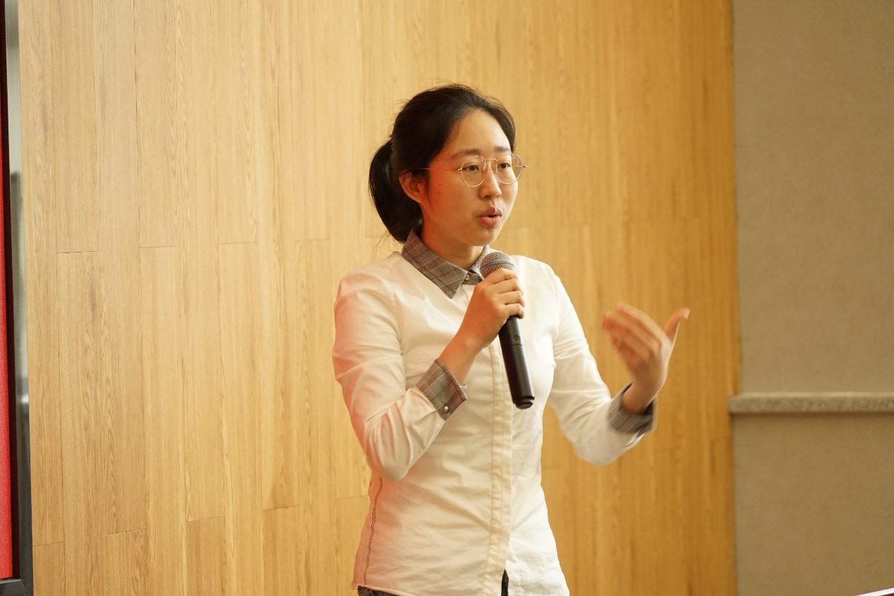 史诗洁老师代表指导老师组发表感言,讲述了在学校的大力支持下,指导组全力以赴,顺利完成了选拔、培训、赴广州参赛等竞赛环节,并取得了优异成绩。