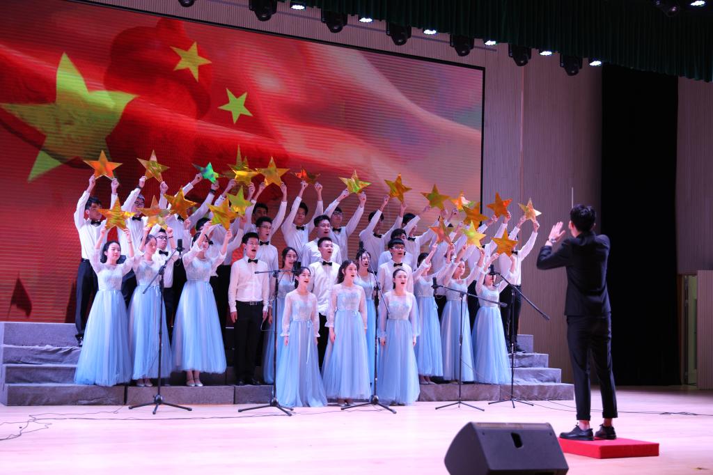 各参赛队伍的动人歌声深深打动了现场观众;歌声暂歇时,由学校老师与同学合作表演的诗朗诵《五四畅想》同样令人心潮澎湃。比赛在学校基础教学部支慧老师的一首独唱《曙色》中走向尾声。