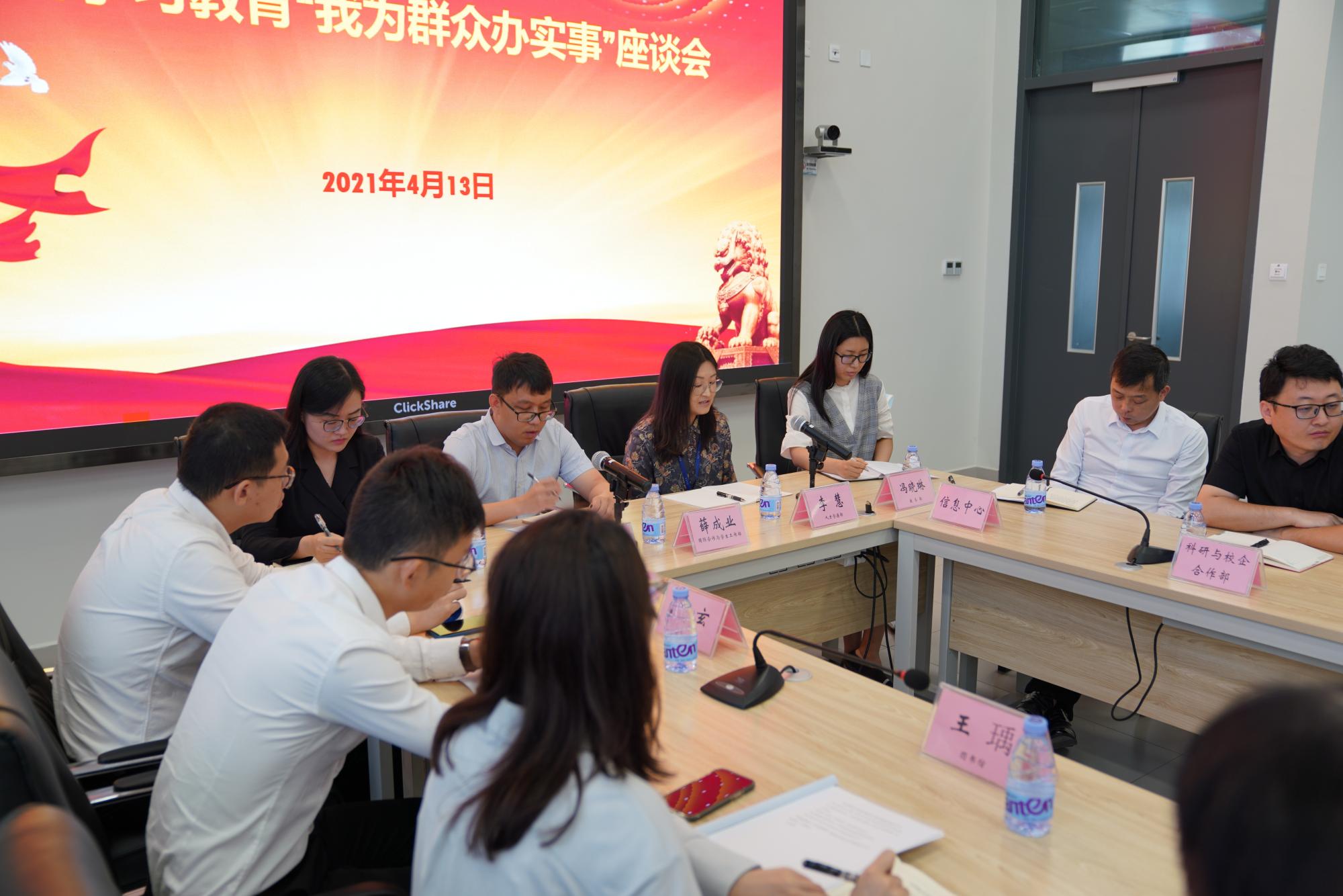 本场座谈会旨在贯彻落实习近平总书记在党史学习教育动员大会上的重要讲话精神,积极倾听教职工的呼声,切实解决教职员工最关心最现实的问题。此前,各参会代表已充分收集本部门、本学院教职员工对学校相关工作的意见建议,以及日常生活中遇到的热点难点问题,在会上进行集中反馈与讨论。