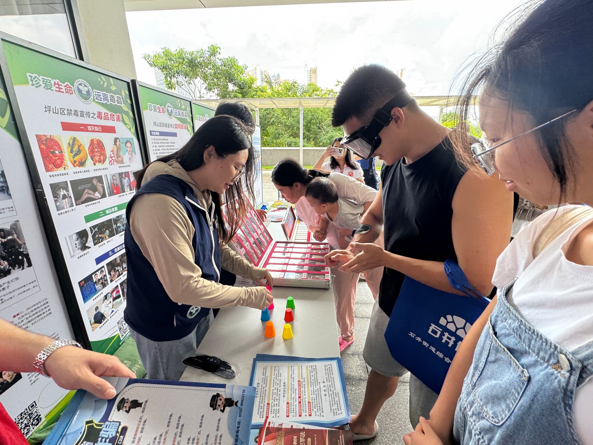 6月16日,学校与坪山区应急管理局、石井街道应急办联合开展“安全宣传咨询日”活动,帮助学生们学习心肺复苏的正确操作和应急装备的穿戴技巧,了解用电安全知识,掌握消防水枪及灭火器的使用方法等,进一步增强安全防范意识及紧急避险能力。在6月26日国际禁毒日当天,学校联合坪山区石井街道禁毒办公室、坪山公安分局石井派出所开展禁毒宣传活动,通过仿真毒品展示柜、禁毒知识展板及现场志愿者讲解等形式,向师生们直观揭示毒品的严重危害,并科普各种新型毒品和反邪教相关知识,引导师生远离毒品、珍爱生命。