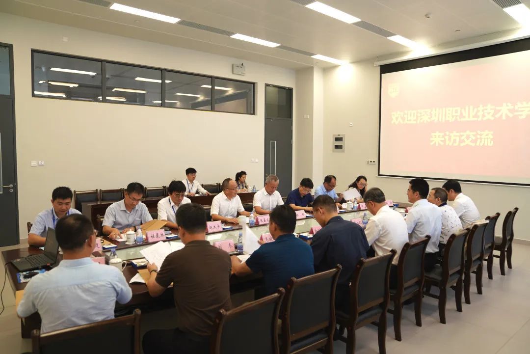 7月16日下午,深圳职业技术学院党委书记、校长杨欣斌,副校长马晓明一行到访我校,双方就校园规划、学科建设、校企合作、人才培养等问题开展座谈交流。我校党委书记张基宏、副主任徐刚及相关部门负责人参加座谈会。