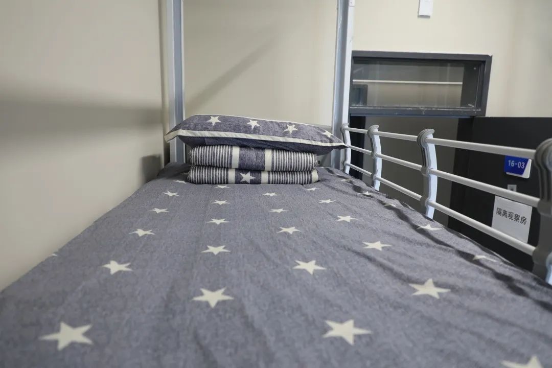 学校在北区E-2学生宿舍14至16层设立了超100间健康观察隔离单人间,并配备了日常生活用品。该区域使用独立的专用电梯,电梯采用脚踏式按键。