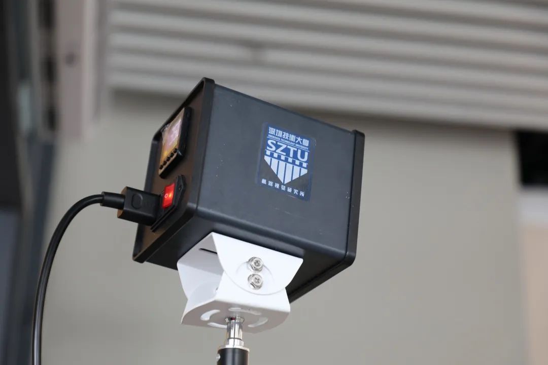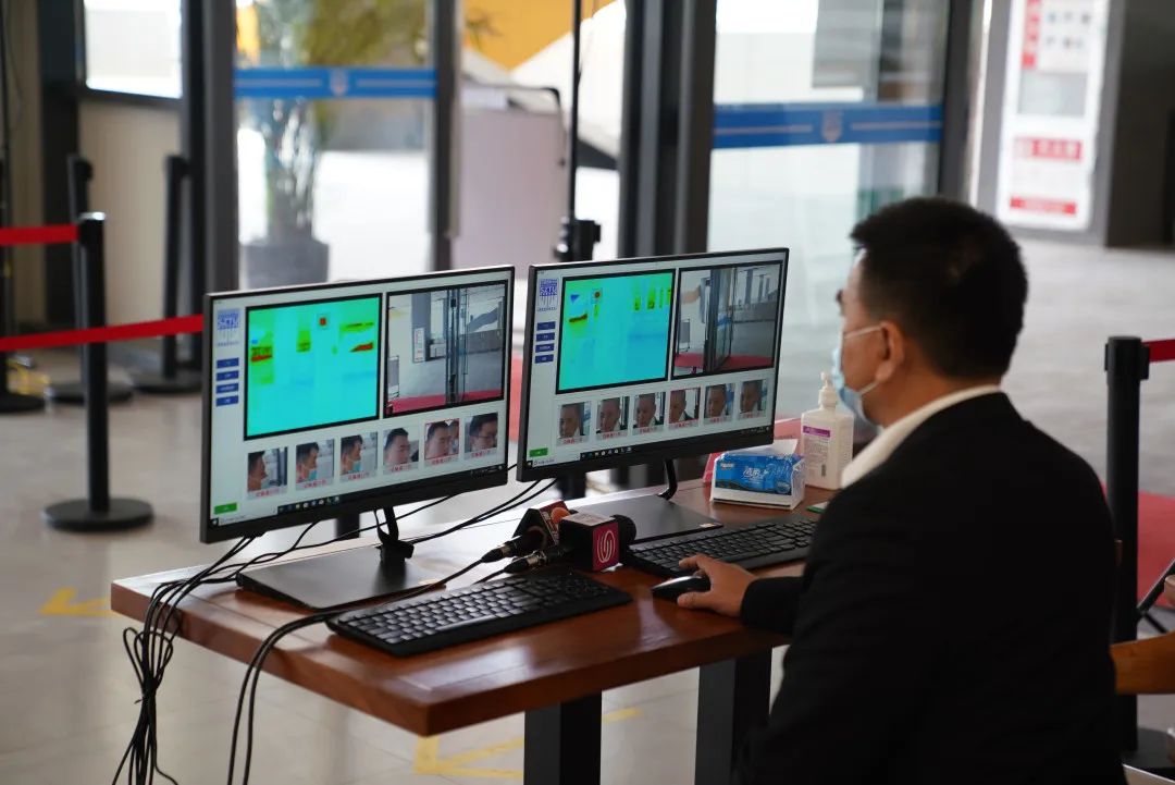 校园内各建筑入口均设有深技大针对疫情自主研发的红外热像测温仪,采取非接触式测温,充分满足校园测温需求。