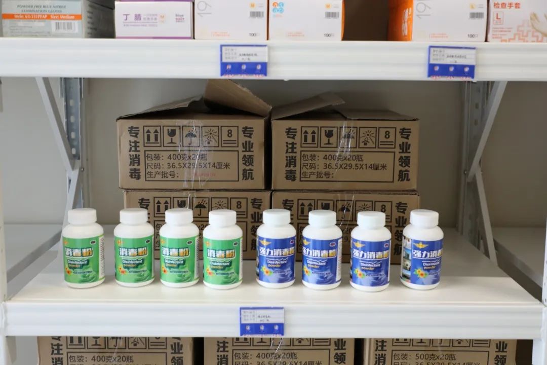 学校通过自行采购、教育部门配发、爱心企业捐助等,现已基本确保各类防疫物资阶段性使用需求。学校现设有防疫物资专用库房,储备了大量防疫配套物资,其中消毒液、消毒粉预计可使用3个月以上,各类规格消毒酒精可使用46天以上;同时配备有测温枪、护目镜、防护衣、乳胶手套、雾化式空气喷雾剂等配套防疫物资。为做好餐饮服务,学校还储备了一批一次性打包盒,方便师生打包外带。
