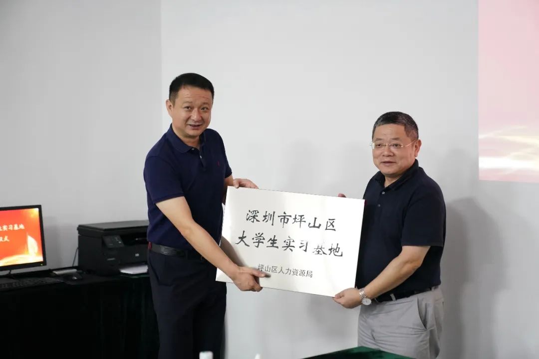坪山区人力资源局党组成员、二级调研员李伯湛为本征方程公司颁发“深圳市坪山区大学生实习基地”牌匾