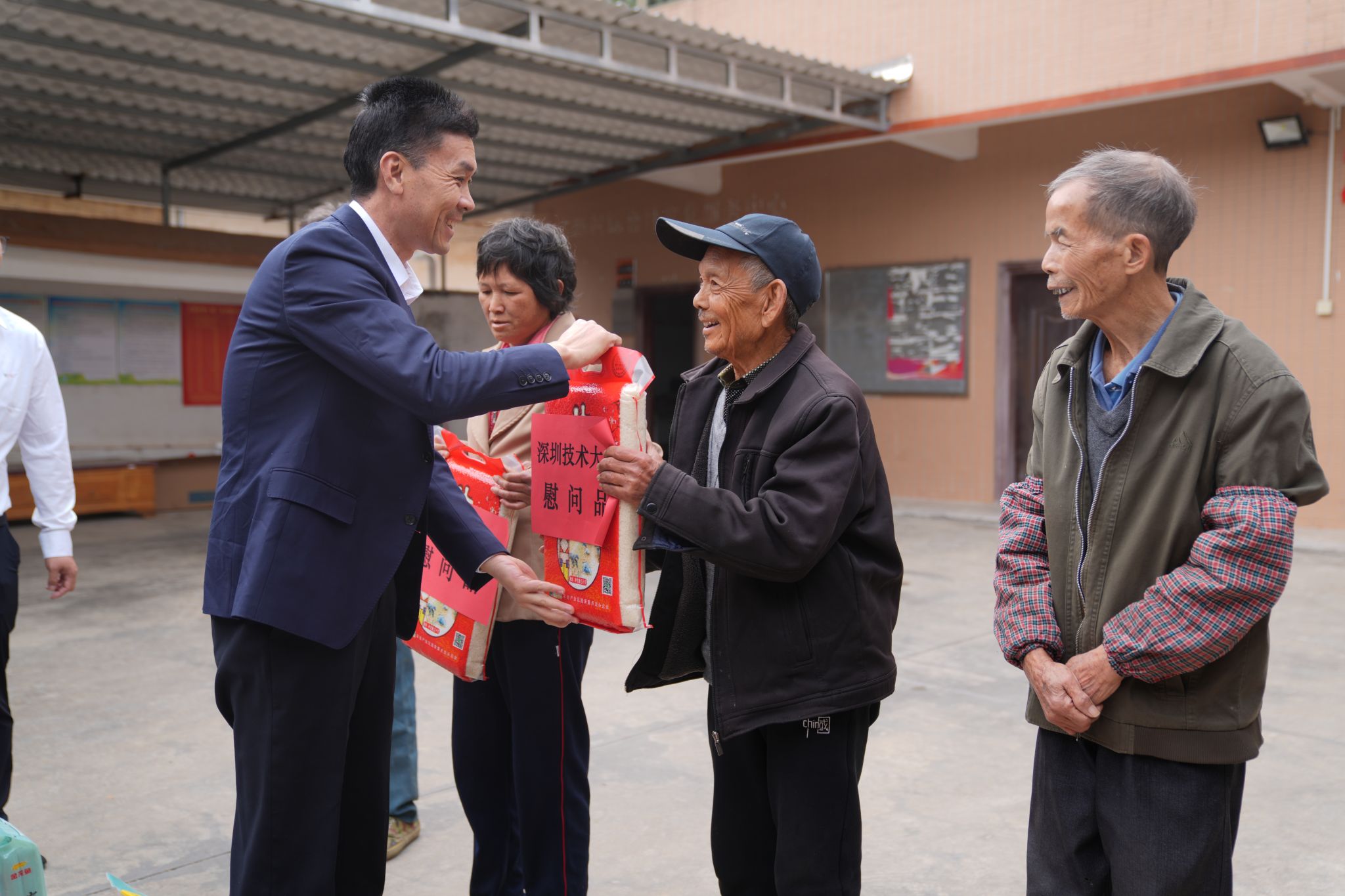 在连平县,陈秋明重点对鹰嘴桃主要产地坪镇古坑村进行实地调研,参观深技大“双百行动”工作帮扶成果,查看古坑镇“一堤两岸”风貌规划设计落实情况,深入了解产业发展中依然存在的难点痛点。他要求学校明年重点在稻米、鹰嘴桃等特色农产品的质量标准提升、产品包装、销售宣传,以及镇村规划设计方面,持续加大帮扶力度。期间,陈秋明还深入到隆街镇立新村,了解深技大驻镇帮镇扶村工作开展情况,慰问困难群众。