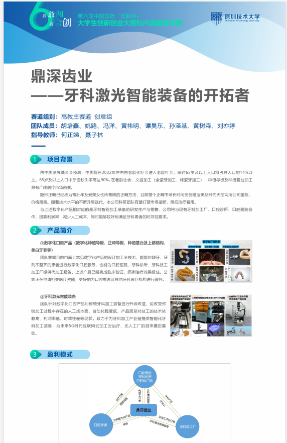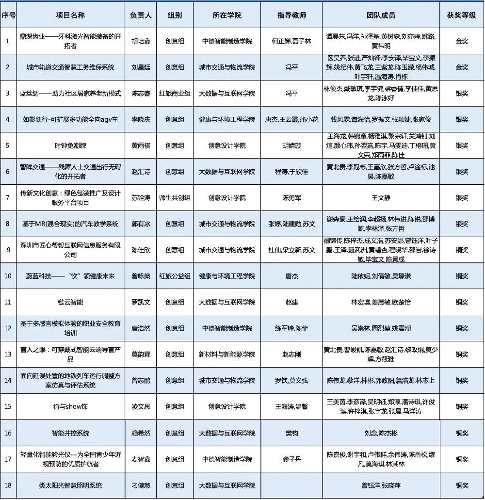 本次大赛于2020年3月启动,共收集参赛项目50个,有效参赛项目39个,其中创意组34个、师生共创组2个、红旅公益组2个、红旅商业组1个,参赛师生近300人。经学院初审、校赛网评、决赛路演、金奖争夺赛,共评选出“鼎深齿业——牙科激光智能装备的开拓者”等18个获奖项目。具体获奖名单如下: