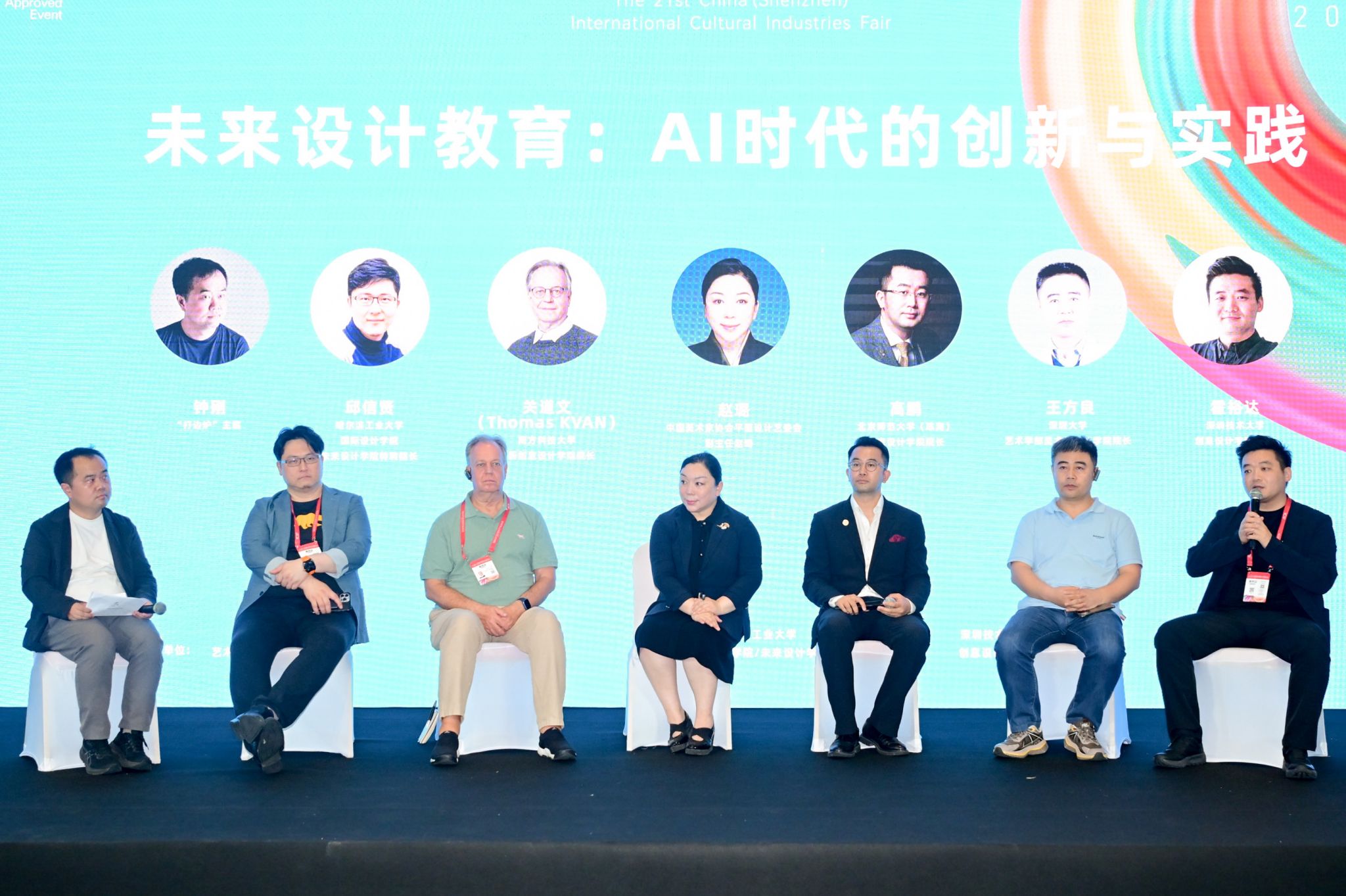 5月22日下午,大湾区高校的设计学院掌门人聚首文博会现场,展开一场“未来设计教育:AI时代的创新与实践"为主题的研讨。中国美术家协会平面设计艺委会副主任赵璐、深圳大学艺术学部美术与设计学院院长王方良、南方科技大学创新创意设计学院院长关道文(Thomas KVAN)、kaiyun开云官方网站创意设计学院院长霍裕达、哈尔滨工业大学国际设计学院特聘院长邱信贤、北京师范大学未来设计学院院长高鹏等嘉宾,围绕主题分别发言,深入探讨面向技术革新的时代,设计教育如何创新路径、如何拥抱未来。