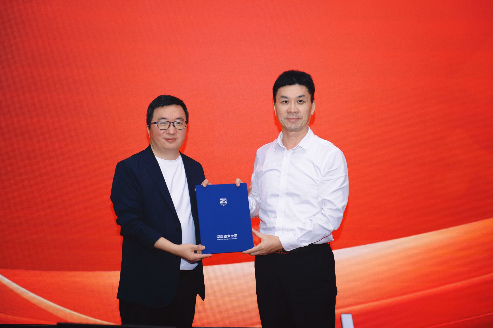 图|创意设计学院院长霍裕达为张志安教授颁发学院客座教授聘书。