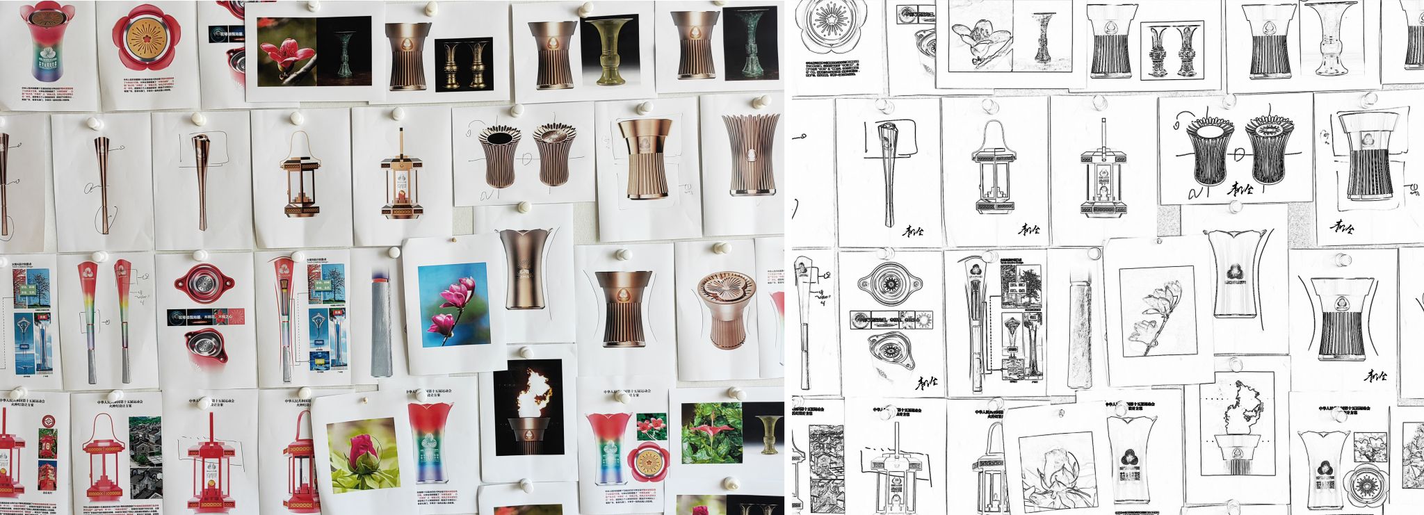 除火种盆外,李立全团队还完成了火炬与火种灯的设计。其中,火炬融合 “花觚” 与粤港澳大湾区元素,火种灯则融入广东连平 “花灯” 与岭南建筑 “镬耳” 元素,虽未最终入选,但 100 余张设计草图与概念方案,同样彰显了团队服务国家重大文化工程的努力。