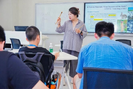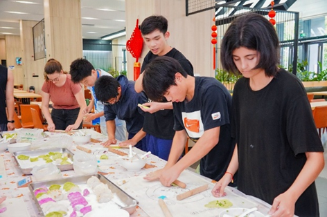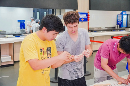 文化课程成为感知中国的重要载体。美国学生通过书法实践体悟东方美学,在广府文化课上学习舞狮步法,在汉字历史课上追溯从甲骨文到简体字的演变脉络,还参与了汉语专题、中美文化异同探索等课程,全方位触摸中华文明精髓。中美学生还在面点师傅指导下一起包饺子,从生疏到创意制作出“元宝”“月牙”等造型,在美食分享中深化友谊。