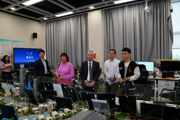 新西兰Ara坎特伯雷理工学院一行还前往人工智能学院、外国语学院与学院领导、系主任及教师代表进行交流,参观了人工智能学院ACM算法与程序设计创新实验室、Robomaster悍匠战队、物联网应用创新实验室及外国语学院写作中心、德国工业文明研究中心、同声传译实验室等。