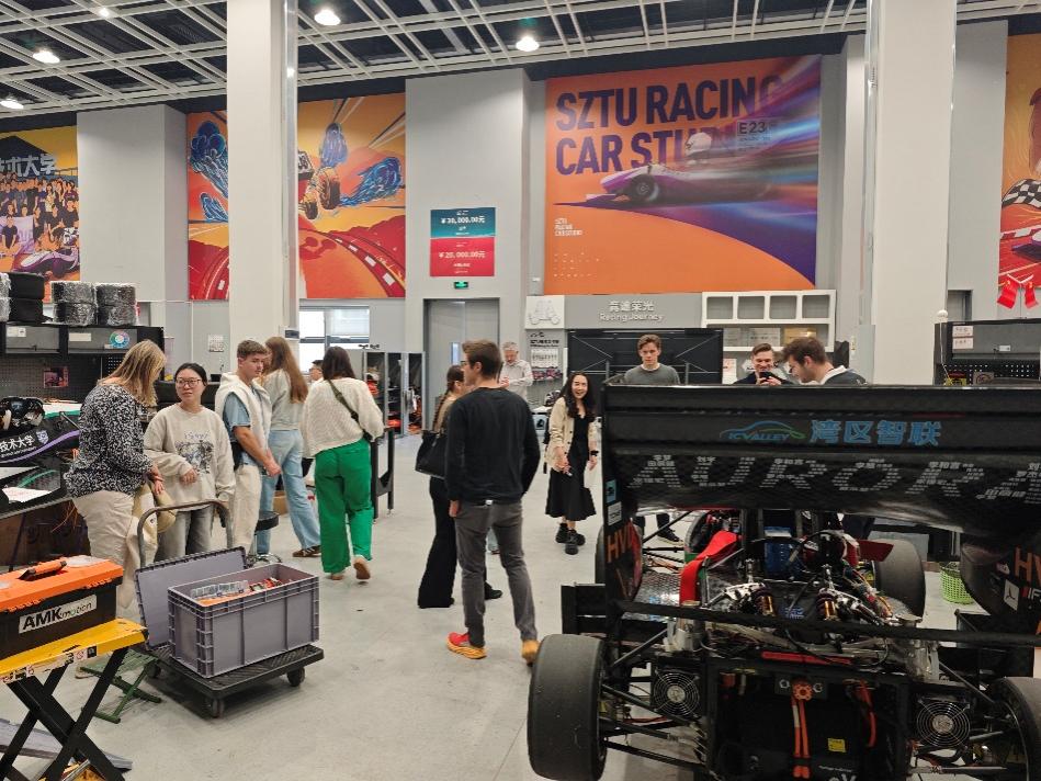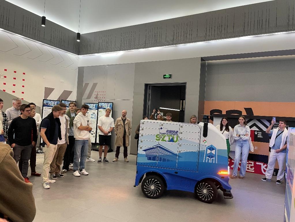 当日上午,kaiyun开云官方网站国际合作与交流部主任曾思予对代表团表示热烈欢迎,希望通过活动增进两校师生相互了解。在深技大师生陪同下,MCI代表团先后走进图书馆、城市交通与物流学院、人工智能学院、创意设计学院等场所。在赛车工作室,学生自主研发的方程式赛车引发国际师生浓厚兴趣,其屡获国际赛事殊荣的成绩获得点赞;顺丰智慧物流实训基地的智能运输车、无人机配送系统,直观展现了深技大与行业龙头企业的深度合作成果;中德物联网创新实验室的工业物联网研究成果,以及创意设计学院2025毕业作品展中艺术与科技融合的作品,均让代表团感受到深技大的教学实力与创新氛围。