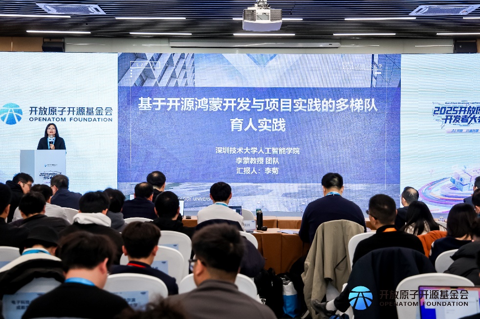 11月21日,2025开放原子开发者大会在北京召开,大会以 “一切为了开发者——AI共智,开源共享” 为主题,聚焦人工智能与开源技术融合发展。会上,开放原子开源基金会发布《2025中国高校开源育人案例集》,李蒙教授团队的 “基于开源鸿蒙开发与项目实践的多梯队育人实践”案例成功入选全国优秀案例,团队成员李菊老师现场作案例分享,获与会专家广泛认可。同时,李蒙、李菊两位老师因在学生创新实践指导中的突出贡献,共同荣获“校源行优秀指导老师奖”。