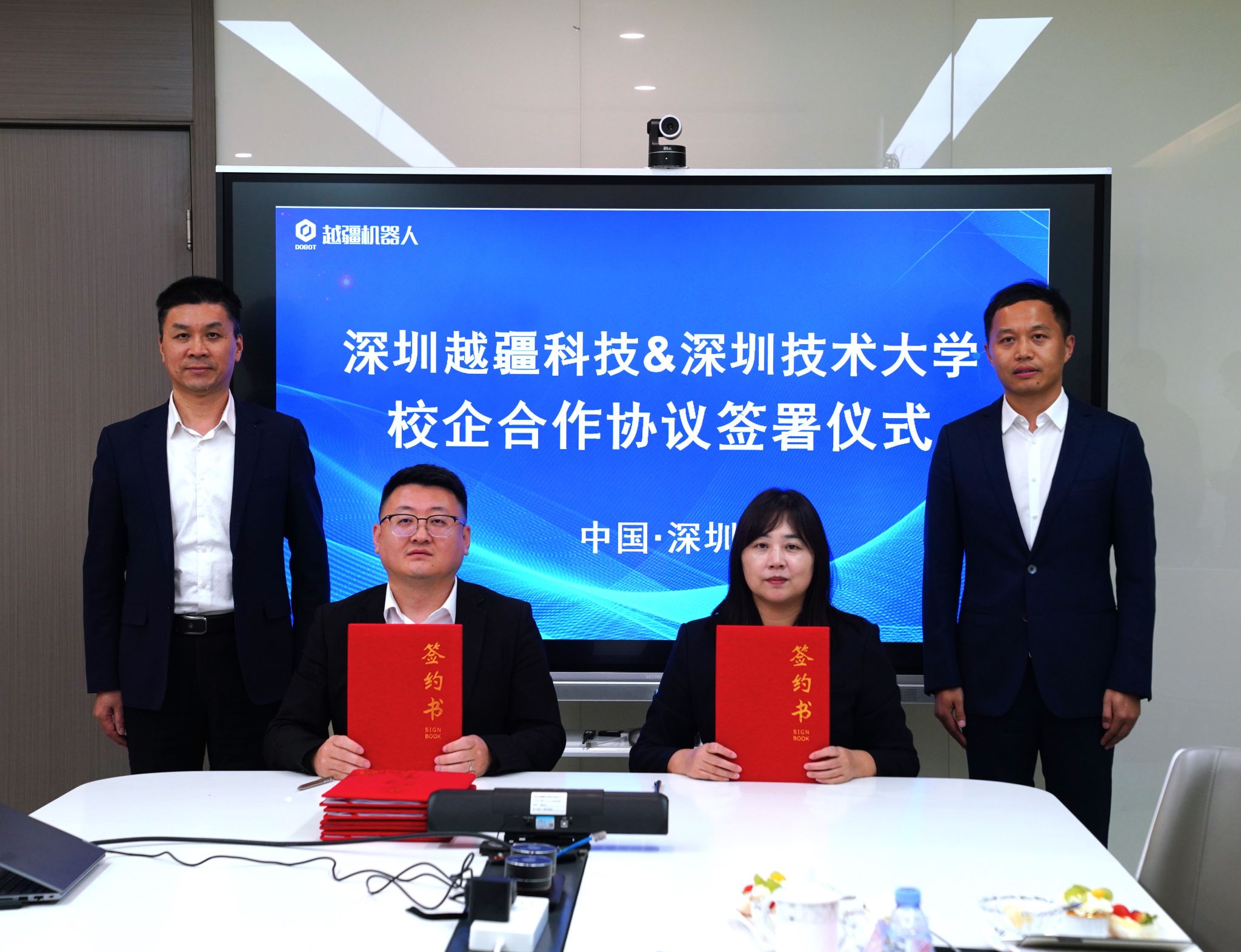 在双方主要负责人见证下,三场签约仪式相继举行。深技大科研与校企合作部主任吴旭与越疆科技营销副总经理王星签署《校企合作战略合作协议》,确立科研攻关、课程开发、实习就业等全方位合作框架。