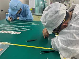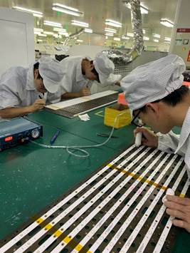本次实习内容丰富,实操很多。同学们首先学习了聚飞光电的企业文化,认识到了企业文化对员工和产品的重要性。接下来学习了LED产品从固晶、焊线、注胶、烘烤、冲压、分光、包装、入库的工艺流程,企业导师向同学们介绍了LED的发光原理、原物料及使用事项,还介绍了灯条中的工艺关键器件棱镜的分类和模具的开发过程。在学习了LED的基本知识之后,同学们自己动手实操了固晶、焊线、注胶、烘烤、冲压、分光等LED和灯条生产的关键工艺流程。