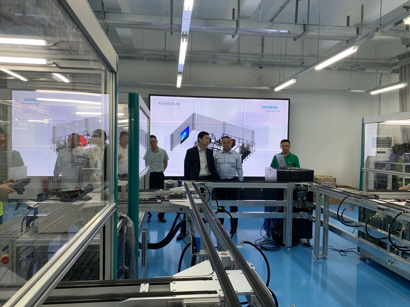 座谈会结束后,深技大副主任徐刚、中德智能制造学院副院长王红志陪同西门子代表团前往参观中德啤酒酿造过程控制实验室及工业4.0智慧工厂项目。