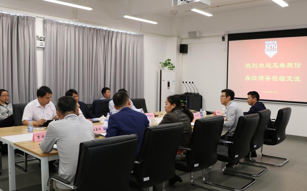 2019年2月21日,新学期的第一日,深技大迎来第一家到访企业——广西玉柴机器股份有限公司(以下简称玉柴股份)。玉柴股份运营管理高级总监杨振、工程研究院党委书记胡国强、运营管理部业务架构首席总师韦炜一行三人莅临我校,商洽校企合作相关事宜。我校副主任张岩鸿、中德智能制造学院院长吕启涛、科研与校企合作部主任杜晨林、中德智能制造学院副院长王红志、大数据与互联网学院副院长曹建民等相关教师参加此次座谈会。