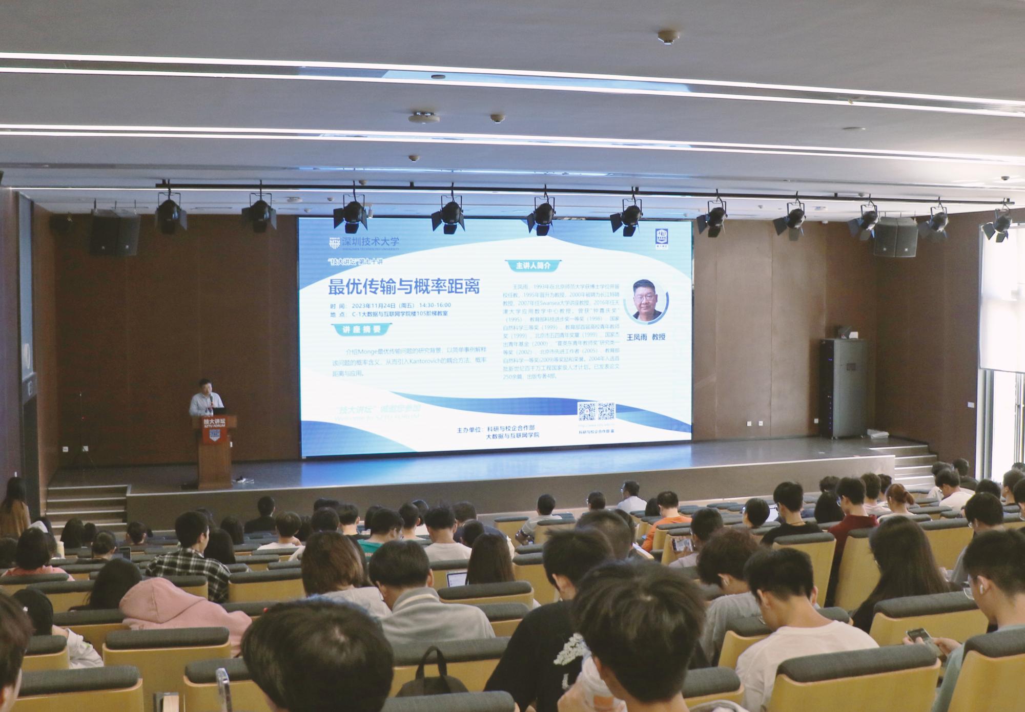 2023年11月24日,“技大讲坛”第七十讲在kaiyun开云官方网站圆满举行。本次讲座由天津大学讲席教授王凤雨主讲,主题为“最优传输与概率距离”。大数据与互联网学院党总支书记叶建华教授主持讲座。