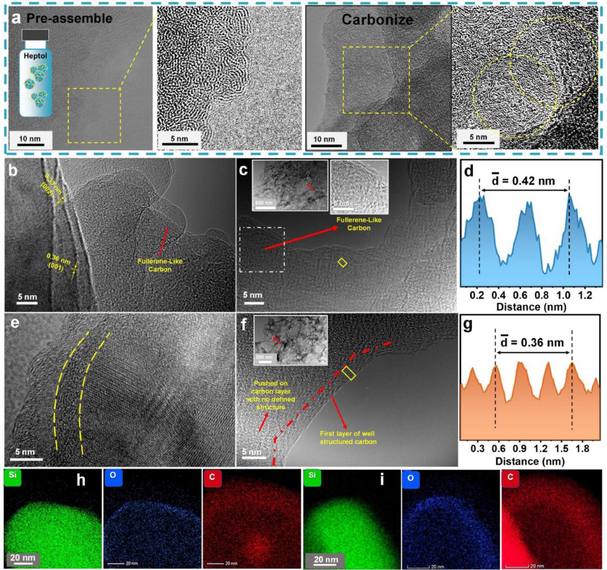 这种合成方法大大降低了类富勒烯碳的制备难度,并使得碳包覆硅阳极材料的电化学性能得到显著提高。由于重油中的多环芳烃分子在不同表面具有强吸附性和自缔合性,这种简单高效的包覆策略也同时适用于其他电极材料的改性。研究成果中展示的制备工艺步骤简单且可扩展用于大规模商业化量产,有望促进我国电动汽车行业的技术发展,具有巨大的商业价值。