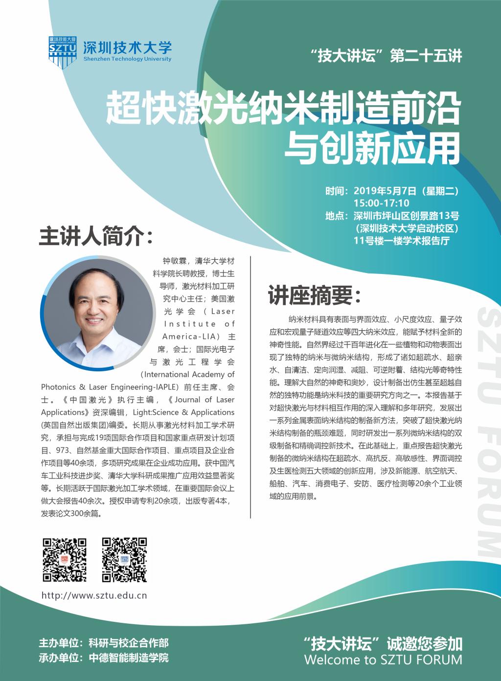 纳米材料具有表面与界面效应、小尺度效应、量子效应和宏观量子隧道效应等四大纳米效应,能赋予材料全新的神奇性能。自然界经过千百年进化在一些植物和动物表面出现了独特的纳米与微纳米结构,形成了诸如超疏水、超亲水、自清洁、定向润湿、减阻、可逆附着、结构光等奇特性能。理解大自然的神奇和奥妙,设计制备出仿生甚至超越自然的独特功能是纳米科技的重要研究方向之一。本报告基于对超快激光与材料相互作用的深入理解和多年研究,发展出一系列金属表面纳米结构的制备新方法,突破了超快激光纳米结构制备的瓶颈难题,同时研发出一系列微纳米结构的双级制备和精确调控新技术。在此基础上,重点报告超快激光制备的微纳米结构在超疏水、高抗反、高敏感性、界面调控及生医检测五大领域的创新应用,涉及新能源、航空航天、船舶、汽车、消费电子、安防、医疗检测等20余个工业领域的应用前景。