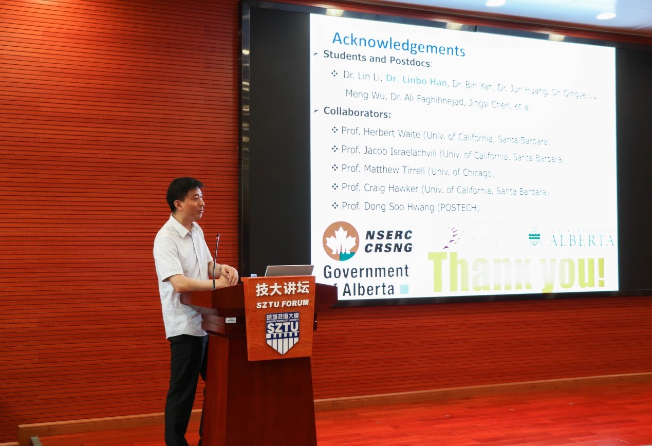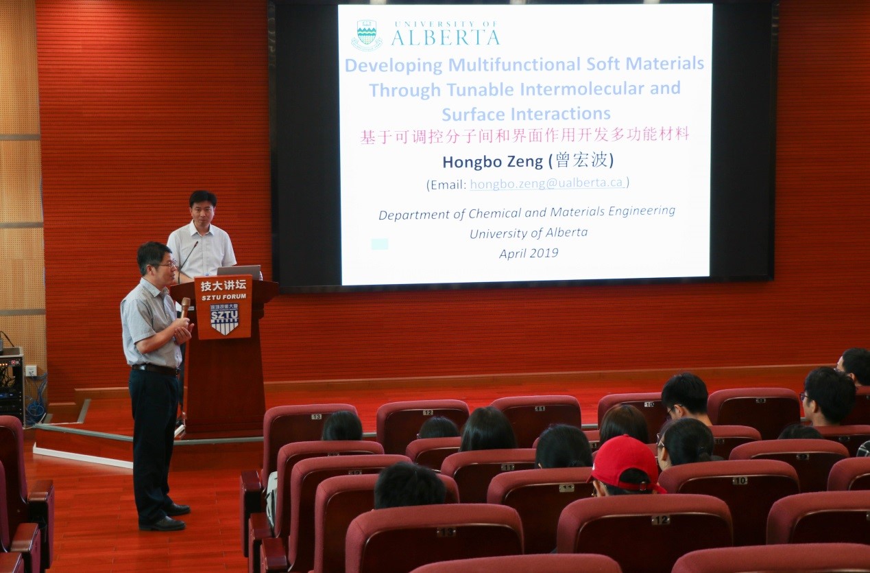 2019年4月26日,加拿大国家讲席教授、分子力和界面科学领域首席科学家曾宏波教授应邀访问我校,在学术报告厅为我校师生举行了一场主题为“基于可调控分子间和界面作用开发多功能材料”的学术讲座,讲座由健康与环境工程学院院长胡俊青教授主持。
