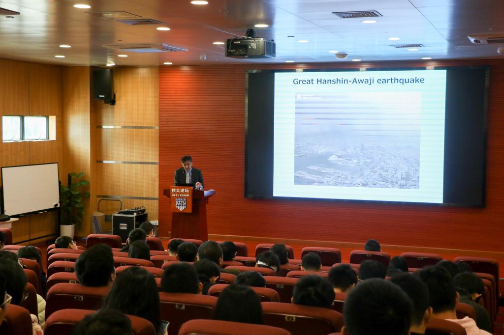 在受聘仪式后,高田教授为我校师生带来一场主题为“日本自然灾害时的撤离行为特征及应急准备”的讲座,我校约一百余名师生参加此次讲座。高田教授主要介绍了日本发生的主要大地震和地震后所总结的经验及加强灾害预防的措施,并讲解了围绕灾难撤离行为的研究和主要课题和在日本当地社区的最新研究成果。