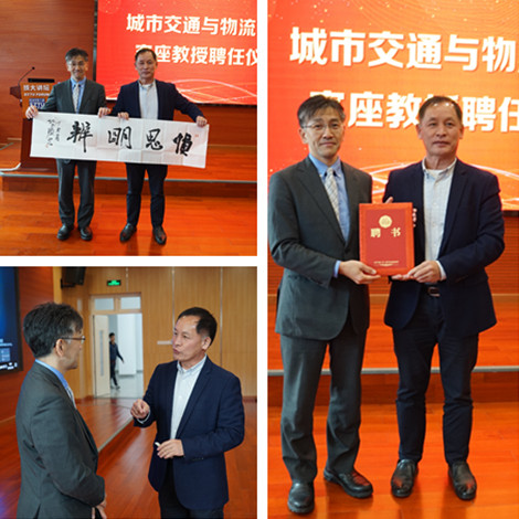 2018年12月11日,日本东京电机大学高田和幸教授造访kaiyun开云官方网站启动校区,受聘为我校城市交通与物流学院客座教授,我校副主任徐刚教授为高田和幸教授颁发聘书,并为他送上题字作为礼物。