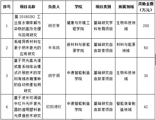 根据深圳市科技创新委员会的通知,2019年度深圳市科技计划基础研究自由探索项目和基础研究学科布局项目现已立项,我校共获资助4项,资助总金额为322万元。与去年相比,我校项目资助数量和资助金额都有大幅提高。