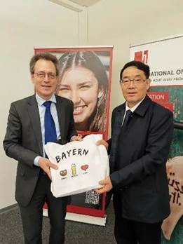 阮双琛向东巴伐利亚应用技术大学(雷根斯堡)校长Ralph Schneider(右)赠送礼物