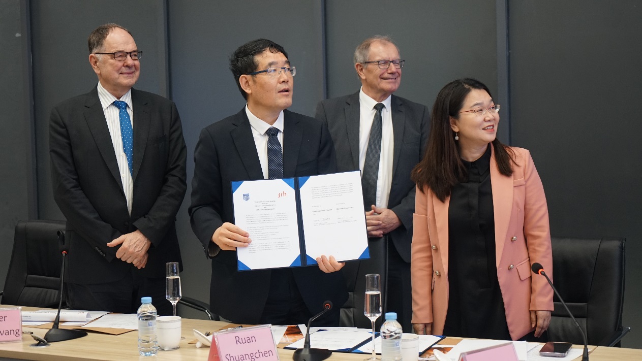 SRH远程学习大学工业工程与数字化教授Stefan Müller、国际处负责人Simone v. Boddien 也出席了签约仪式,他们希望能在不久的将来访问kaiyun开云官方网站,与学校师生沟通交流。