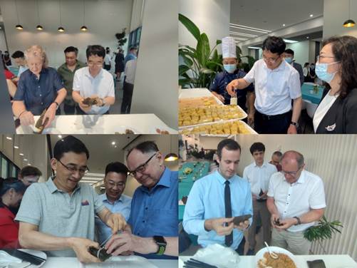 活动现场,欢度端午的外籍教职工体验制作粽子和中国特色小吃绿豆糕,大家在浓厚的节日氛围中踊跃参与,现学现包,收获颇丰。