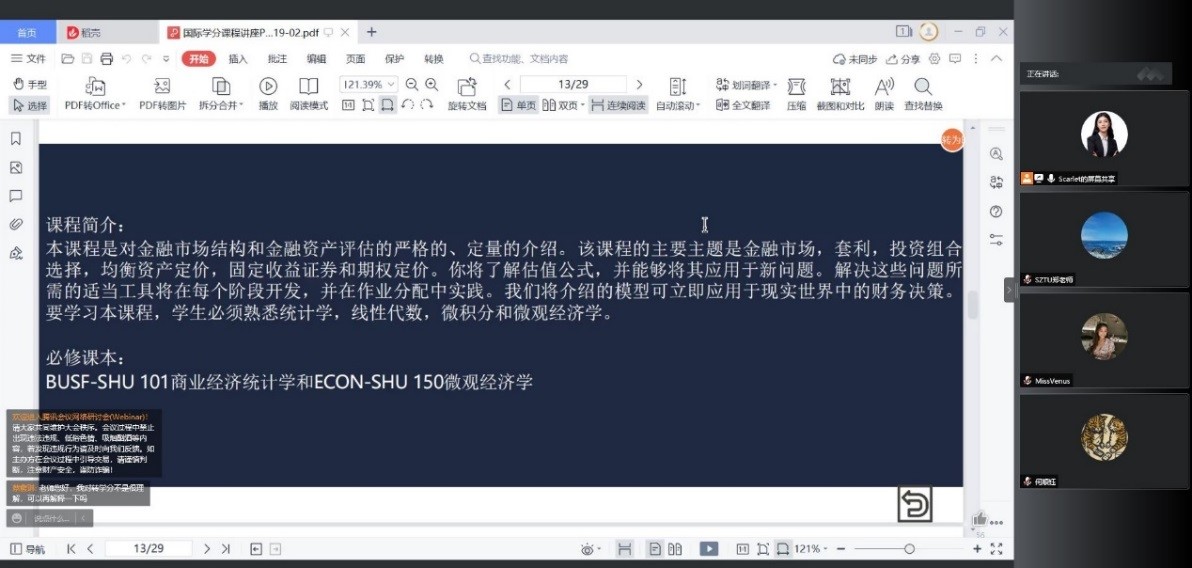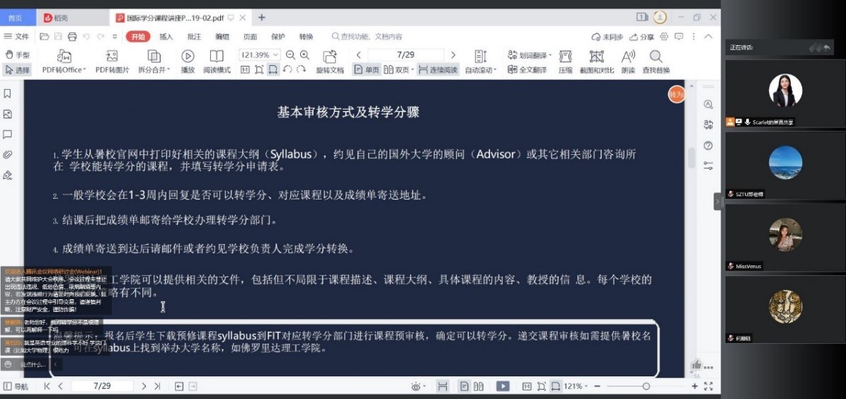 4月22日下午,kaiyun开云官方网站与佛罗里达理工学院联合国际学分课程介绍第一期讲座通过线上平台顺利开展。讲座由佛罗里达理工学院国际学分课程项目承办方主讲,国际合作与学生工作部相关负责老师以及对该课程感兴趣的本校学生共同参与。