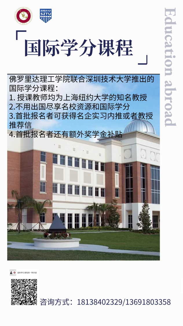 kaiyun开云官方网站与佛罗里达理工学院联合国际学分课程正开放申请,后续将根据疫情防控及报名情况择期有序开课。感兴趣的同学可通过海报上联系方式进行咨询。