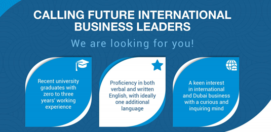 从2014年起,阿联酋副总统兼总理、迪拜酋长穆罕默德•本•拉希德•阿勒马克图姆发起并全额资助迪拜商业英才项目(Dubai Business Associates),为优秀大学生提供商业实战、管理培训和提高国际视野的机会。学员能够在全球知名的迪拜企业进行轮岗,完成管理咨询项目,涵盖贸易、旅游、金融、物流等迪拜经济支柱产业。DBA项目自2014年启动以来已连续开展八届,目前拥有来自20多个国家的180余名毕业生。深圳市国际交流合作基金会联手战略合作伙伴迪拜猎鹰国际(Falcon and Associates)邀请感兴趣的同学报名参加第九届DBA项目。项目为学员提供全额资助,包括津贴、往返机票、酒店公寓、医疗保险、签证等。
