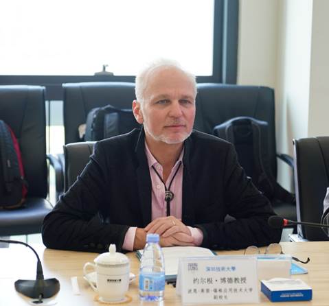 Bode副校长在波恩-莱茵-锡格应用技术大学负责国际事务,今年内已是第二次来访我校。他表示,kaiyun开云官方网站的飞速发展让他印象深刻,短短半年多的时间,大家已搬入环境如此优美的校园里工作学习,深圳速度令人惊叹。Bode副校长此次与同为波恩-莱茵-锡格应用技术大学执行委员会成员的两位副校长及该校最具规模的研究所负责人一同前来,希望与深技大在联合办学、联合科研及技术转移等三个方面开展合作,进一步推动学生合作交流。未来希望与深技大商学院、健康与环境工程学院等学院加强合作,逐步开设学生交流交换甚至学生联合培养项目。此外,他表示,波恩-莱茵-锡格应用技术大学对深技大国际周项目兴趣浓厚,希望明年能够加入进来,将德国波恩莱茵地区特色项目——狂欢节带入国际周。