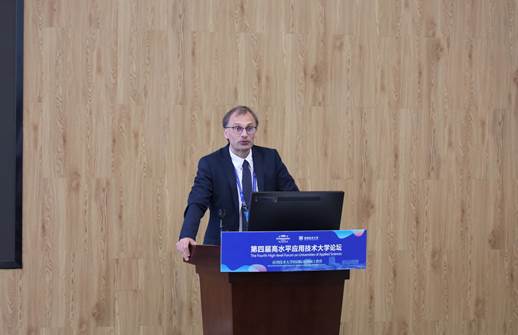 格哈德·施耐德教授的演讲主题围绕“应用大学的使命”,并以阿伦应用技术大学为例,分享了应用技术大学在培养学生、引领科研、推动社会进步等方面所发挥的作用。他指出,应用技术大学的使命应包含研究、教育和服务。研究方面,阿伦应用技术大学在多个领域设置了研究机构和实验室,并积极争取第三方基金资助,为技术进步和产业发展提供智力支持和保障;在教育方面,为适应人工智能、国际化需求、可持续发展等带来的新的挑战,应用技术大学需要调整教学内容和方式,培养具有国际视野、专业技能和综合素质的应用型人才;服务社会方面,阿伦应用技术大学通过建立科学中心、创业孵化基地等方式,向社区儿童、创业青年、中小企业等提供多种激发兴趣、创业创新、技术应用的机会,实现知识迁移,为社会进步贡献力量。
